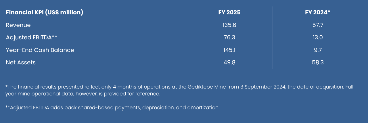 Full-Year 2025 Gediktepe Mine Operating Performance