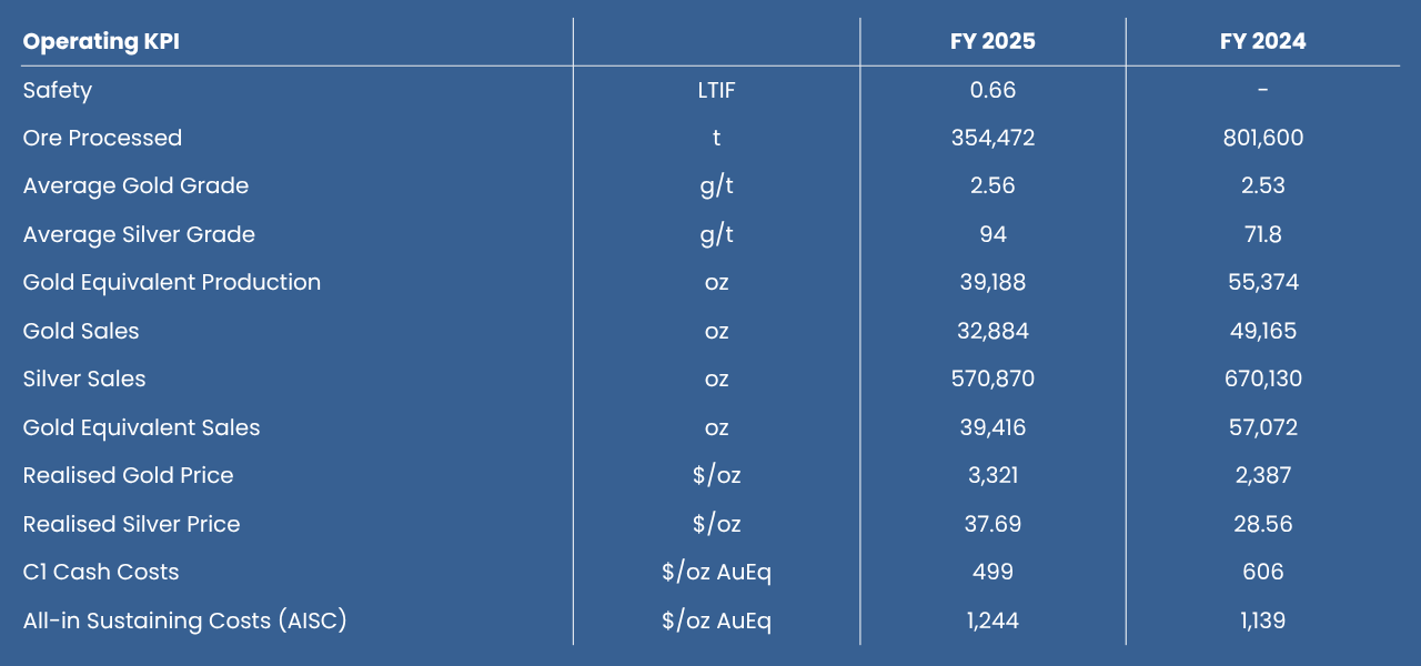 - Delivered FY2025 AuEq production of 39.2 koz; 3% above the top end of revised guidance (c.17% above original guidance);